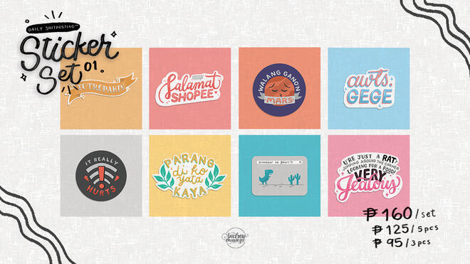 Handlettered waterproof + glitter laminated Daily Shitposting Stickers for ₱20 each.